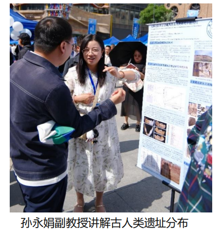 科普活动过程中,为了激发公众的好奇心和参与热情,省重点实验室精心制作了六张学术展板,系统地介绍了团队的研究成果。同时,展出了近几年在野外工作中发现的高原古人类石器工具与陶器碎片,让公众近距离感受考古的魅力。同时,省重点实验室侯光良教授、鄂崇毅教授与孙永娟副教授三位老师与六名硕博士研究生(曾泳昕、彭强、张兆康、刘佳欣、张洁、关佳萌)围绕“高原古人类的精确定年”、“史前人类生存策略”和“文化遗址的时空演变”等方面,为公众细致讲解知识内容。同时省重点实验室为参与活动的公众市民派发书签与钥匙扣等精美文创纪念品。